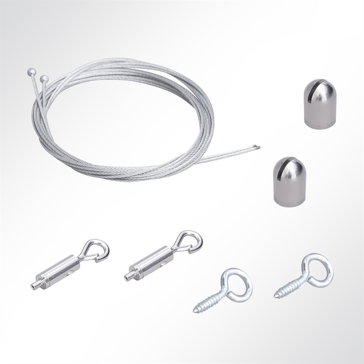 – 2 × Drahtseile à 1,0 m mit Karabinerhaken