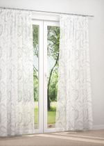 Vereinzelt durch Muster hervorgehobene gestickte Linien formen schöne Blattkonturen und bedecken die gesamte Oberfläche des transparenten Dekostoffes mit leinenähnlicher Struktur und eingearbeitetem Bleiband. Die Linien lassen ein modernes Naturmotiv entstehen, das den Raum wohnlich wirken lässt, ohne zu viel Aufmerksamkeit zu beanspruchen. Ein Fensterbehang aus diesem transparenten Meterwarestoff lässt viel Licht hindurch, das nur sehr schwach abgemildert wird. Somit erscheint der Raum optisch grösser, ausserdem hell, einladend und freundlich. Bei Bedarf können Sie den Dekostoff mit Naturmotiv mit blickdichten Vorhängen kombinieren. Neben Raffrollos und Gardinenschals können Sie aus diesem transparenten Dekostoff auch Tischdecken selber nähen.