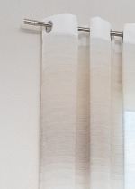 Dieses Modell präsentiert sich mit einem faszinierenden Wechselspiel horizontaler Streifen in verschiedenen Intensitäten. Die Ränder der farbigen Abschnitte lösen sich förmlich auf und verschmelzen harmonisch mit dem Grundmaterial. Dieses leicht verschwommene Erscheinungsbild sieht nicht nur recht attraktiv aus, es fügt sich auch wunderbar in jeden Einrichtungsstil ein. Durch den dekorativen Blickfang und seinen gesäumten Seiten können Sie einen optisch einzigartigen Wohnstil schaffen und gleichzeitig angenehme Lichtverhältnisse geniessen. Dank der Transparenz des Polyesters werden Ihre Wohnräume stets mit viel Tageslicht versorgt. Der Blick aus dem Fenster bleibt dabei nahezu ungefiltert. Ein weiterer dekorativer wie praktischer Aspekt sind die metallisch verstärkten Ösen. An Gardinenstangen oder Seilspannsystemen ist der Schal damit im Nu befestigt. Dieses Zubehör und andere Artikel zur Fensterdekoration finden Sie in unserem Shop. Darüber hinaus bieten wir auch die Möglichkeit, den maschinenwaschbaren Vorhang nach Ihren Wünschen zu kürzen.