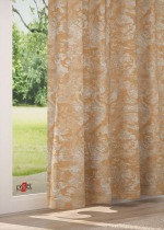 Dieser Stoff fällt durch seine Struktur und die zugleich edel wie natürliche wirkende, abwechslungsreiche Optik auf. Das glänzende und geschmeidige Material wurde mit an Ornamente erinnernden, geschwungenen Formen verziert, die sich stets in einer Farbwelt bewegen und teilweise ineinander überzugehen scheinen. Momente eines floralen Musters bringt das Design ebenfalls mit. Auf der Rückseite ist es in Negativ-Optik zu sehen. Der lichtdurchlässige, blickdichte Polyesterstoff lässt sich schonend bei 30 Grad reinigen. Seiten und Abschluss sind gesäumt.