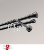 Dieses zweiläufige Gardinenstangen Set mit offenen Trägern beinhaltet neben den runden Gardinenstangen aus glänzendem Metall auch drehbare Doppel-Kombiträger mit Metallmontageplatte und Befestigungsmaterial zum Schrauben, Gardinenringe mit Gleiteinlage sowie zugehörige Gardinenhaken. An die Ringe mit Gleiteinlage werden die Faltenlegehaken geclipst. Anschliessend wird die Gardine oder der Vorhang mittels Gardinenband oder Kräuselband an den Faltenhaken befestigt. Die integrierte Gleiteinlage erleichtert die Bedienung und sorgt zudem für ein nahezu geräuschloses Verschieben der Ringe auf der Stange. Die Endstücke, die mit passendem Innensechskantschlüssel geliefert werden, haben die Form eines Kegelstumpfs, der etwas antik wirkt und an einen Türknauf erinnern kann. Die anderen Endstücke sind als Kappe gestaltet, welche Sie einfach auf die hintere Gardinenstange aufsetzen können. Die stabilen Kombiträger aus Metall besitzen zwei halbrunde Öffnungen und dienen mit drehbarem Aussenstück der Befestigung an der Wand. Dabei haben Sie die Möglichkeit die Stangen wahlweise mit der Öffnung nach oben oder unten anzubringen. Sie werden in die Träger eingelegt und anschliessend mit kleinen Schrauben fixiert. Die Kombiträger sind besonders robust und auch für schwere Vorhänge geeignet. Die Gardinenstangen können Sie in verschiedenen Längen bestellen. Abhängig davon sind zusätzlich Verbinder im Lieferumfang enthalten, welche die einzelnen Gardinenstangen zusammenführen und für Stabilität sorgen.