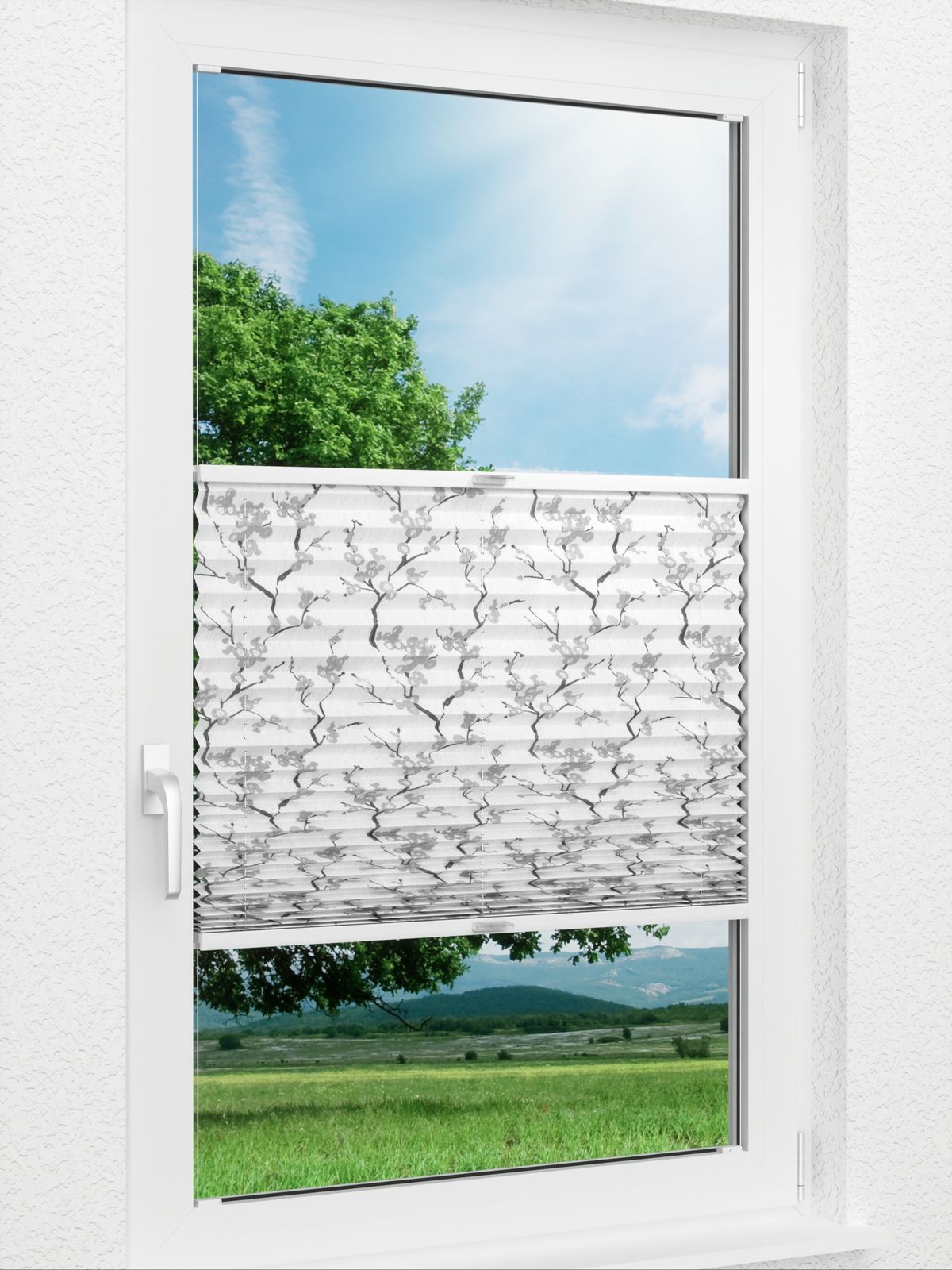Verleihen Sie Ihren Wohnräumen einen besonders edlen Akzent durch dieses wie Pergament wirkende Plissee am Fenster: Am Tag lässt es viel Licht nach innen und erweist sich als besonders dekorativer Sichtschutz. Der nach Ökotex Standard 100 umweltverträgliche und pflegeleichte Stoff ist auch für Feuchträume geeignet und hebt sich vor allem durch den dezenten Blütenprint, der an Kirschblüten erinnert, hervor, der Ihre Fenster stilvoll ziert. In unterschiedlichen Grau-Nuancen überziehen Blütenzweige den weissen Stoff und betonen mit ihrer bescheidenen dezenten Art die Zartheit des lichtdurchlässigen Plisseestoffes. Auf diese Weise wirkt das Ganze sowohl leicht als auch frisch und lässt sich problemlos mit anderen Farbkonzepten verbinden.