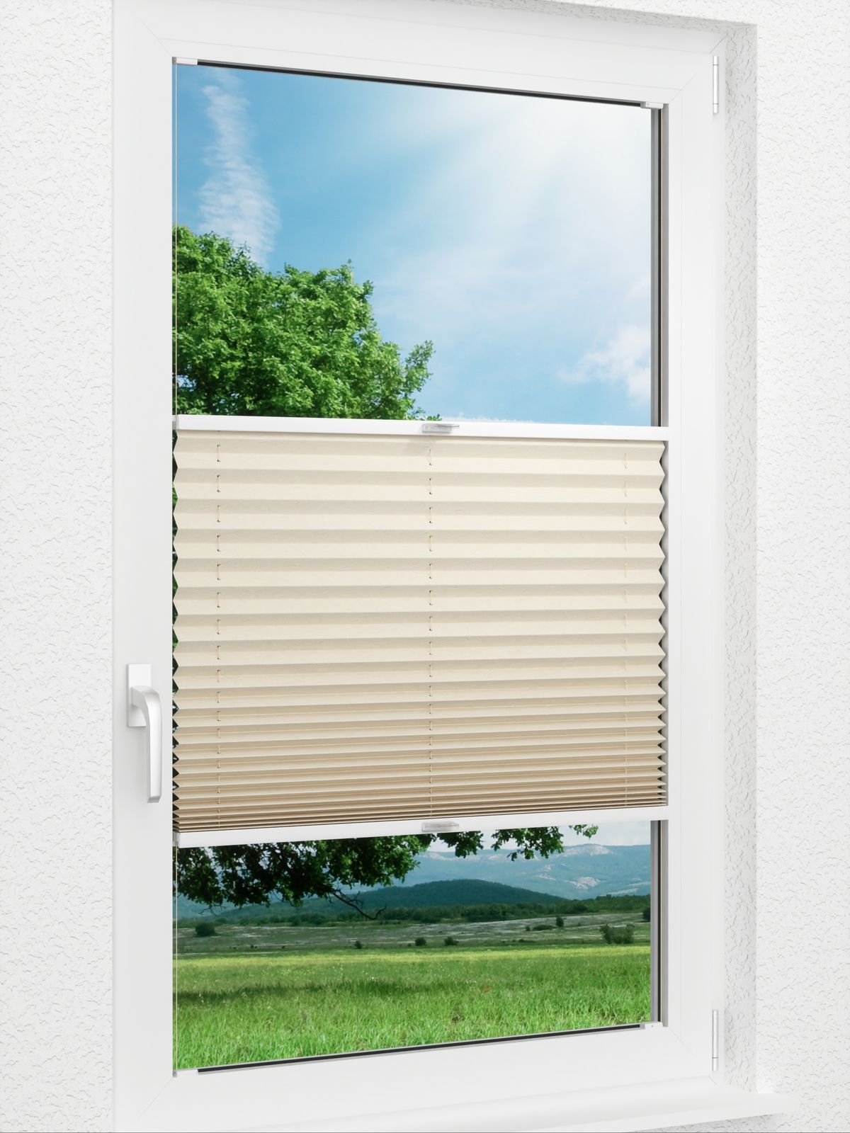 Dieses Plissee bringt durch die Crush-Struktur Lebendigkeit ans Fenster, welche bei Lichteinfall besonders gut zum Ausdruck kommt. Die Oberfläche wirkt seidig und weich; eine Fensterdeko aus diesem Stoff edel und elegant. Durch die unifarbene Gestaltung lässt sich dieses Plissee in Crush-Optik vielfältig kombinieren, auch Muster sind möglich. Aus halbtransparentem Polyestergewebe gefertigt trägt das Plissee zu einer offenen und einladenden Atmosphäre bei, schirmt gleichzeitig tagsüber neugierige Blicke ab und bietet dann also einen gewissen Sichtschutz. Um den Stoff zu reinigen, empfehlen wir das feuchte Abwischen mit einem Tuch. Der Stoff weist einen angenehm weichen elfenbeinfarbenen Ton auf, der eine sanfte sowie unbeschwerte Ausstrahlung besitzt und dabei eine friedliche, harmonische Stimmung verbreitet. Egal für welche Farbgestaltung Sie sich sonst entschieden haben, mit diesem Elfenbeinton haben Sie immer einen zusätzlichen warmen Touch dabei.