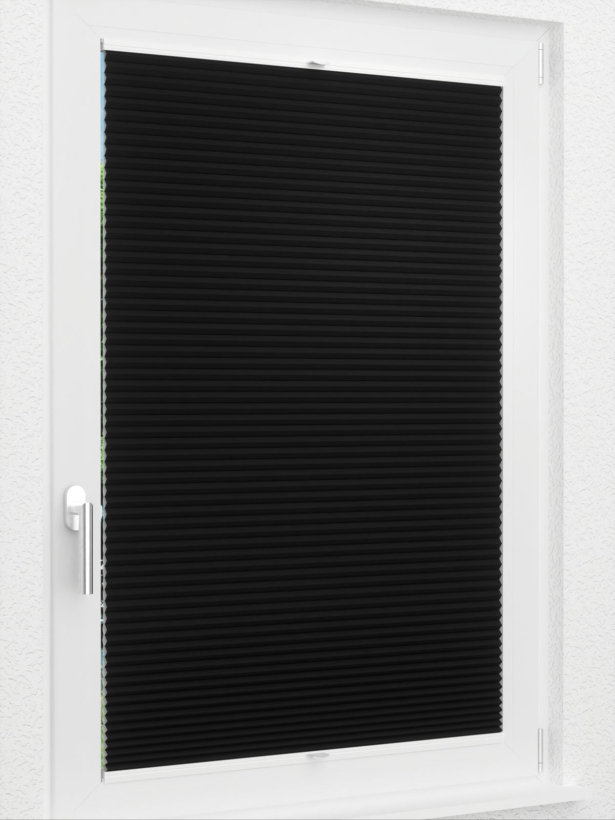 Das unifarbene Wabenplissee mit leichter Struktur und weisser Rückseite kann sich wunderbar und stimmig in die bisherige Raumgestaltung einfügen und diese geschmackvoll ergänzen. Dieses lichtdurchlässige Wabenplissee bietet die perfekte Balance aus Helligkeit und Sichtschutz, Ihre Privatsphäre bleibt stets gewahrt. Weiterhin trägt der gute Wärmeschutz zu mehr Wohlbefinden bei. Als ausdrucksstarker und markanter Akzent ziert das schwarze Plissee das Fenster, das alle Blicke auf sich zieht, gleichzeitig intensive Farben noch mehr hervortreten lässt. Schwarz ist eine wunderbare Basis für die Deko mit glänzenden, metallischen Tönen, genauso für einen monochromen Stil, der ausserdem Abstufungen von Weiss und Grau enthält.