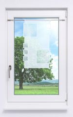 Dieser Scheibenhänger von Plauener Spitze® zeigt ein elegantes Zusammenspiel aus Formen und Mustern. Da dieser Stoff als Rapportware erhältlich ist, können Sie Scheibengardinen in verschiedenen Grössen bestellen, ausserdem mit der Schiebegardine im selben Design kombinieren und ein individuelles Fensterbild kreieren. Die an den Seiten gereihten grossen Quadrate zeigen ein lockeres Fadengeflecht mit vielen Details, zum Beispiel schimmernde, an Perlen erinnernde Punkte, die sich aufgrund ihrer Struktur deutlich von dem Stoff abheben. Die kleineren Quadrate sind mit einem transparenten Stoff ausgefüllt. Somit kommt viel Licht in den Raum, der Behang erfüllt in erster Linie dekorative Zwecke. Per Stangendurchzug lässt sich der Scheibenhänger leicht auf eine Klemmstange aufziehen, die Sie ohne Bohren ins Fenster spannen.