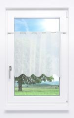 - Eine transparente Scheibengardine aus 100% Polyester.
