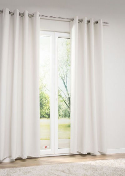 Die Metallösen am oberen Saum ermöglichen ein leichtes Gleiten. Unterschiedliche Lichtdurchlässigkeiten bieten effektiven Sicht- und Sonnenschutz in jedem Raum.